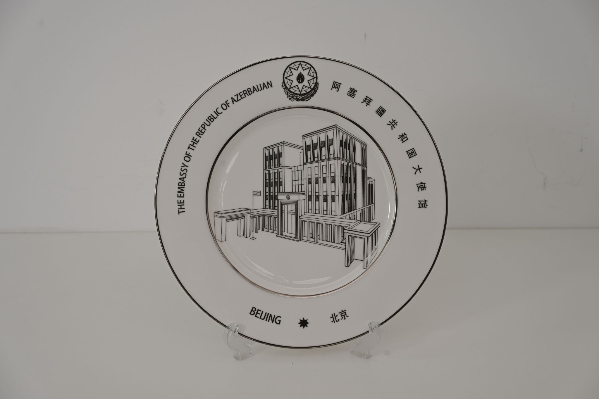 阿塞拜疆驻华大使杰纳利·阿克拉姆赠纪念盘(北语一带一路研究院提供)