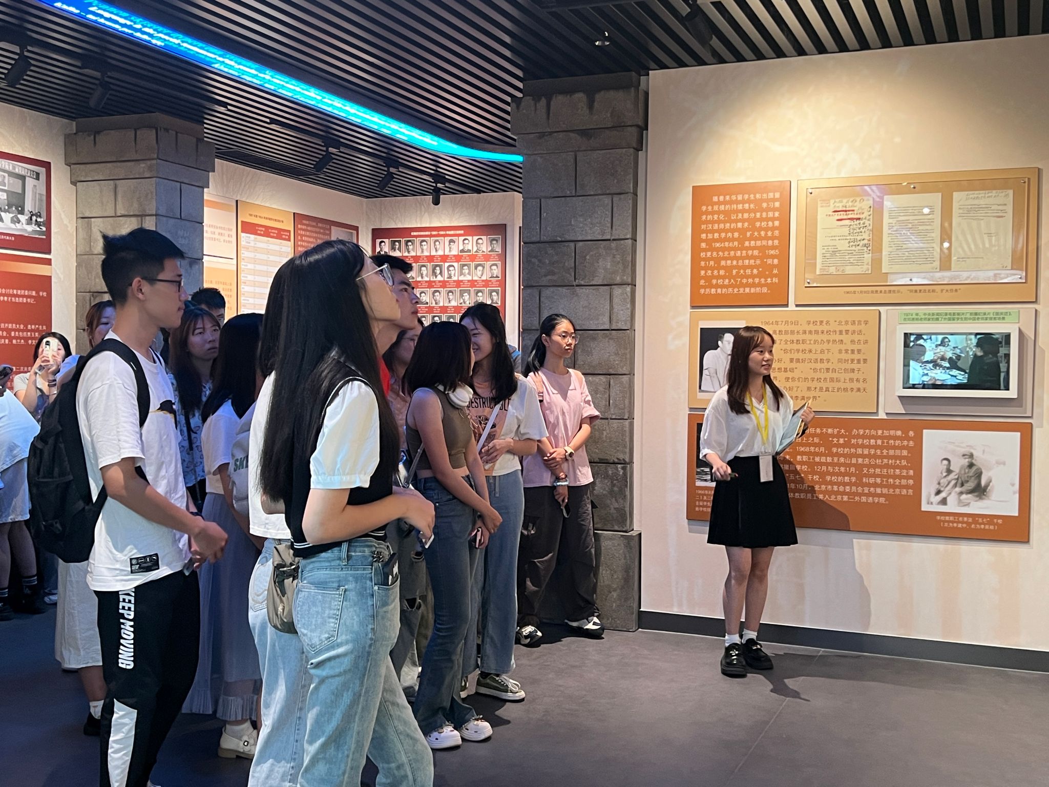你们的声音,是连接北语过去与现在的桥梁,是面向世界展示北语风采的窗口。当你们自信地站在展厅中央,将一代代北语人“德行言语,敦睦天下”的执着追求,将那些筚路蓝缕的创业岁月与辉煌璀璨的办学成就娓娓道来时,这不仅是在讲述历史,更是在诠释北语精神的内核。每一次讲述,都是一次对校史的深刻理解;每一次互动,都是一次能力的提升。