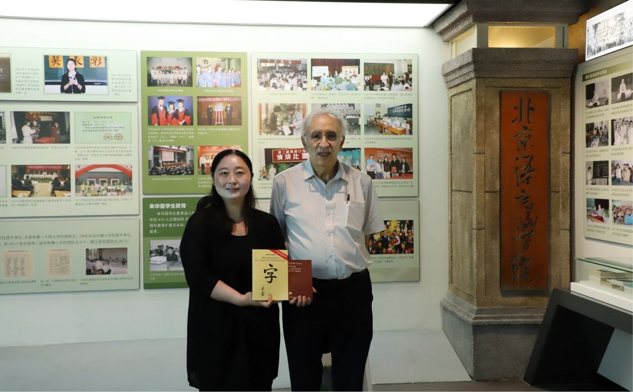 捐赠前,白乐桑教授还饶有兴趣地参观了校史馆,深情回忆起上世纪70年代在北语求学的难忘岁月。